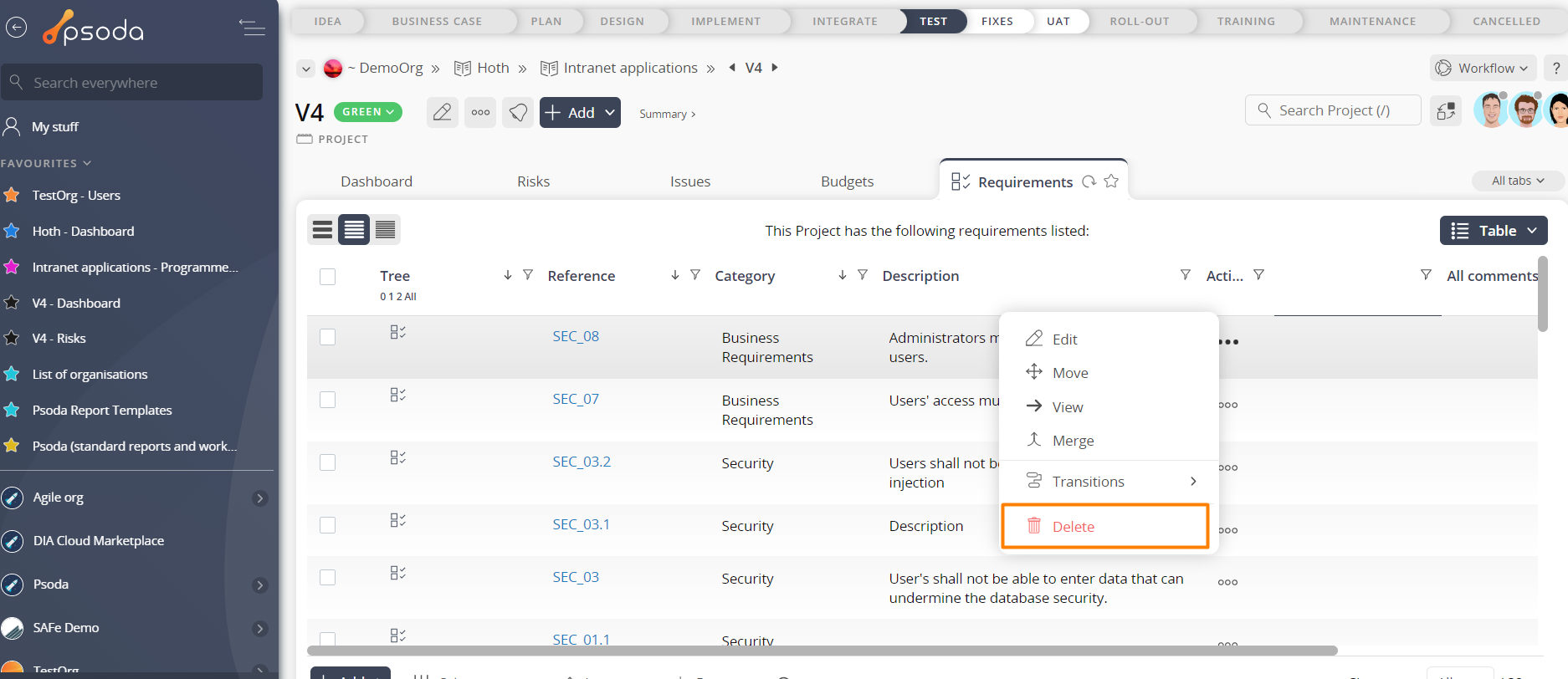 If you are sure you want to delete this requirement then click on the “Delete requirement” button. Otherwise click on “Cancel” to cancel the request.