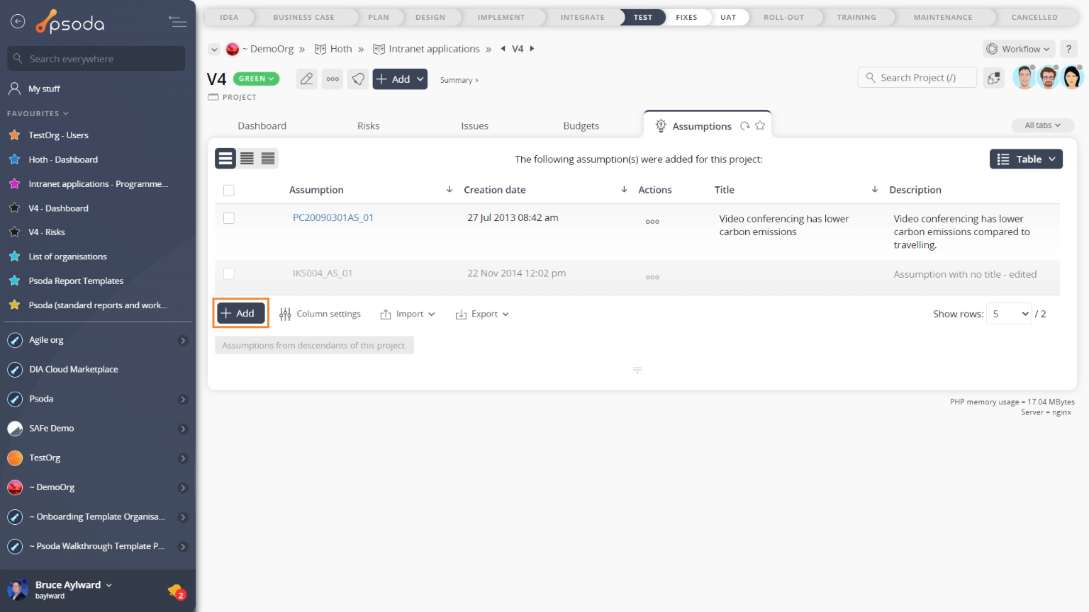 Once you are happy with your entries click the “Add assumption” button at the bottom of the form. This will add a new assumption with the details that you supplied.