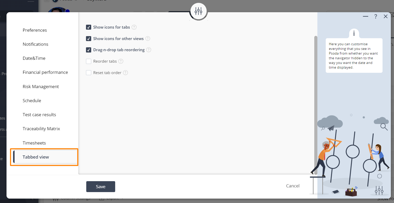 This popup is shown in Figure 2 and allows you to customise how Psoda looks and feels for you, other users will not be affected. These options do not change the way that the data is stored in the database and will be remembered for the next time that you log in.