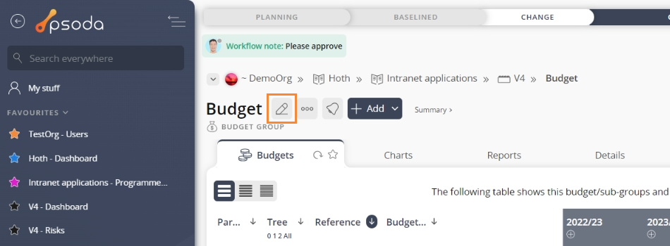 edit button in the top header area of the budget view page, as shown in Figure 1. Alternatively you can access the