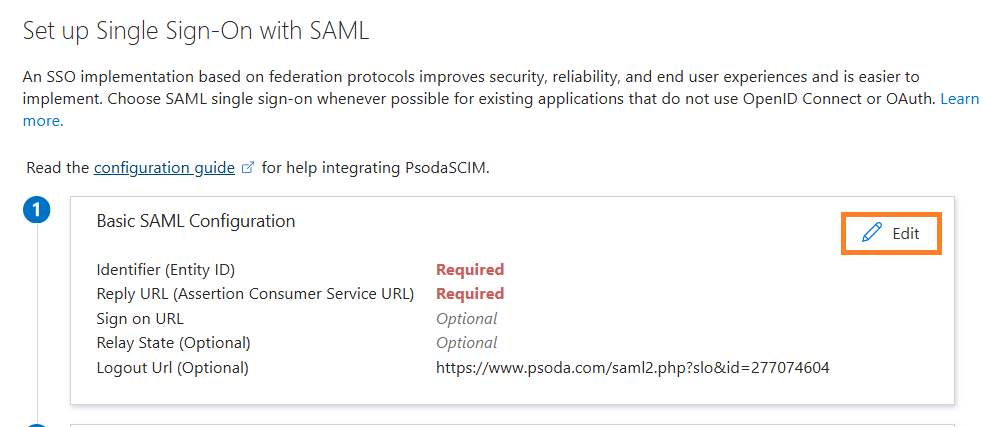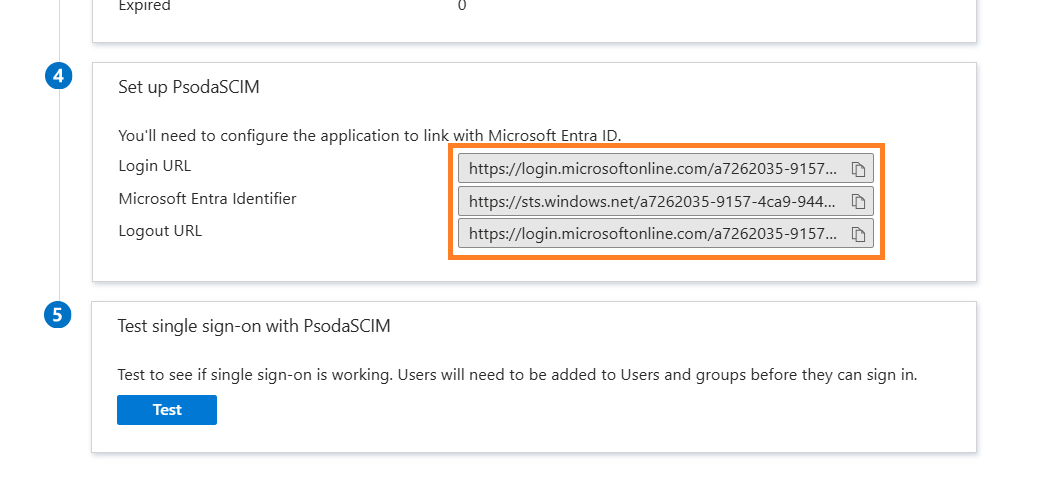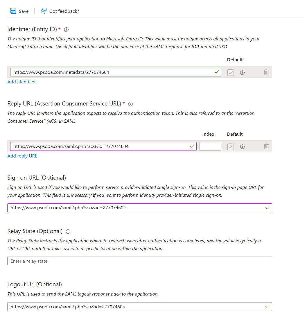 Figure 5 – Entering Psoda-provided URLs into Entra