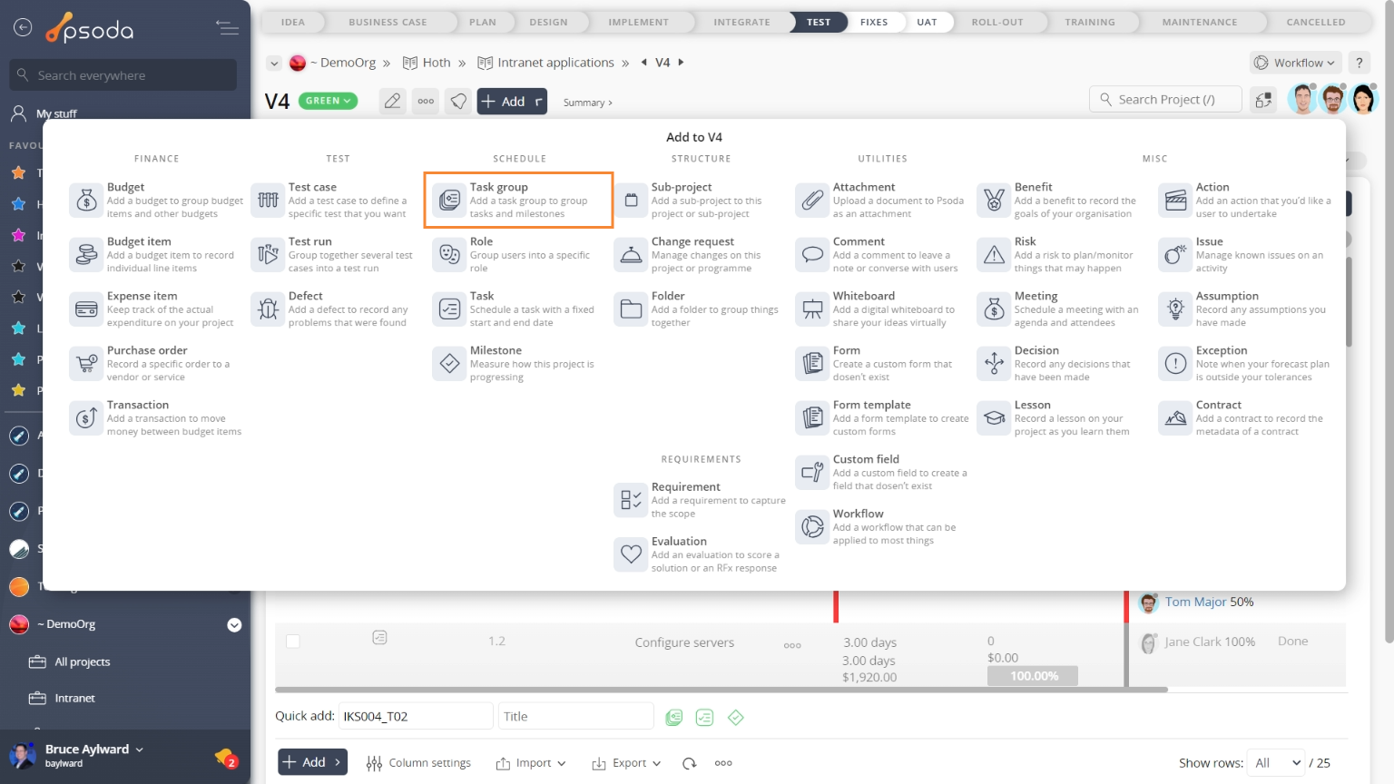 This form has the following fields:| Parent asset: | This read-only field shows which organisation, programme, project, sub-project, task group you are adding this task group to. |